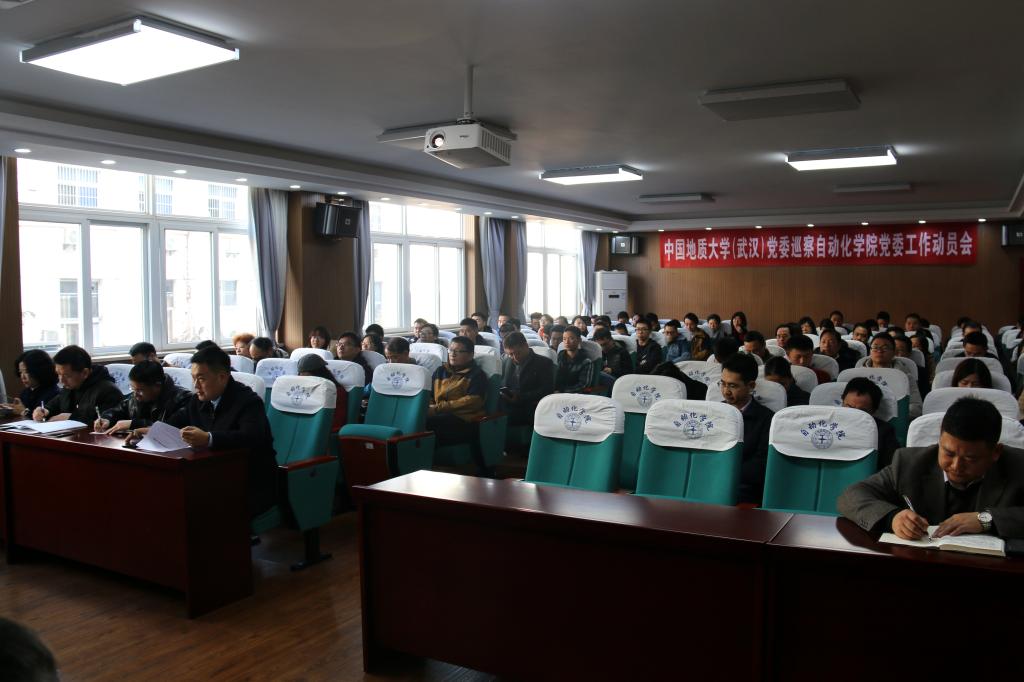信息楼310报告厅召开。学校党委副书记、学校党委巡察工作领导小组副组长唐辉明,学校党委第四巡查组成员张基得、范陆薇、胡兰兰、李正汉、宋干锋,学院全体教职工、离退休老同志代表、学生代表等近90人参加会议。院长吴敏主持会