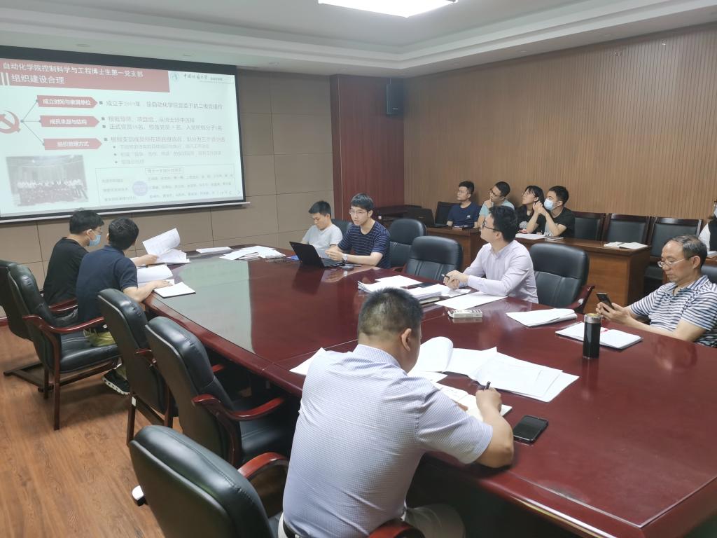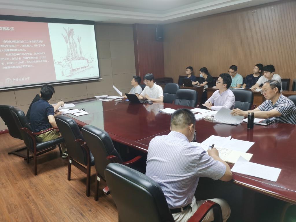 组织开展先进基层党组织评选答辩,本次答辩的评委嘉宾有学院党委书记董浩斌老师,学院党委副书记何建新老师,院直中心党支部书记谢桂辉老师,自动控制系党支部纪检委员甘超老师,测控系与研究所党支部宣传委员朱继轩老师,学院党建辅导员黄兰华老师。