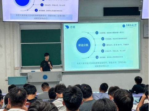 活动伊始,刘振焘教授围绕“教育强国背景下新时代研究生的自我塑造”作专题分享。他从学院历史沿革切入,勉励大家充分依托学院的师资队伍、科研平台等雄厚资源,不断提升科研能力;随后,他聚焦创新思维能力培养,鼓励大家坚持问题导向,勇于挑战前沿难题。最后,他寄语新生,要矢志科技报国,将个人理想融入国家发展,勇攀高峰。