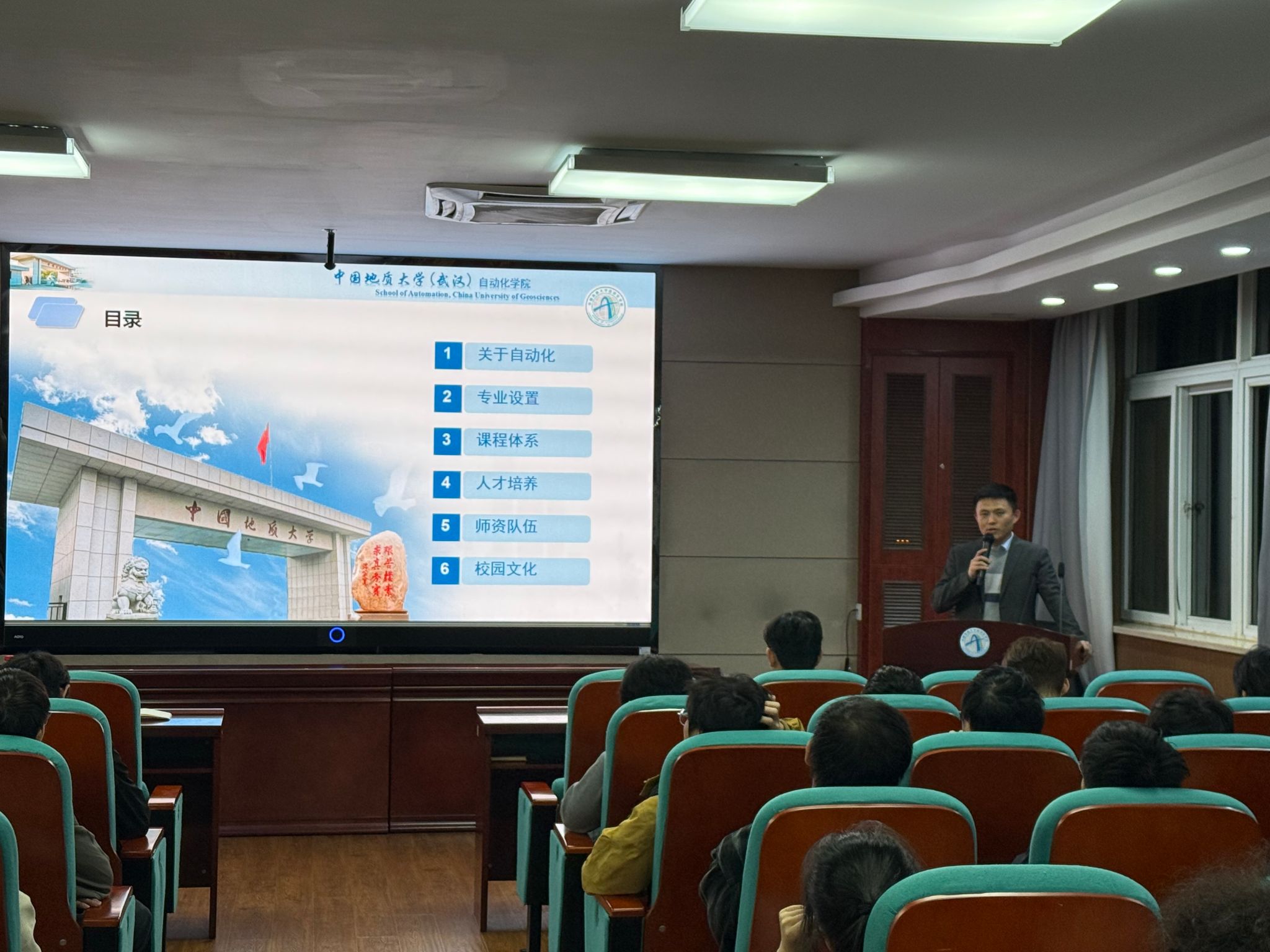 自动化专业宣讲会上,甘老师为大家详细介绍了专业师资力量与课程设置,将人才培养方案中开设的课程结合毕业时学生应达到的素质能力要求和实际应用场景进行深入浅出的讲解。两位高年级同学分享了自身的学习经历和参与专业竞赛的经历,建议同学们要选择适合自己的专业,在专业学习中找到自己的学习方法,积极参与实践活动,全面提升个人能力。