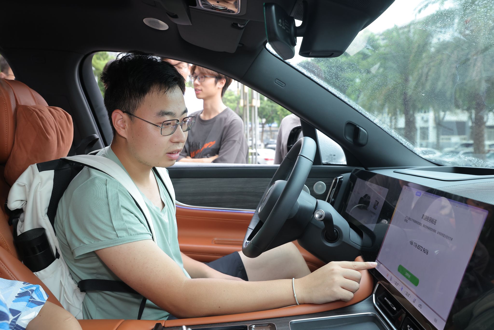 随后,同学们带着高涨的参与热情,前往主楼前广场,参与鸿蒙智行带来校园内的超大型“教具”——问界M9、享界S9,开启实车功能展示体验环节。随着培训师的引导,同学们依次体验了鸿蒙智选车的智能驾驶辅助系统,从自动泊车到智能巡航,每一项功能的精准与流畅,都让人赞叹不已。车内,同学们通过语音指令控制导航、音乐,体验了无缝流转的智能生态,真切地感受到了科技所实现的车家互联生活。此次体验不仅加深了同学们对智能电车行业的技术优势的理解,更引发了他们对未来发展方向的深入思考。