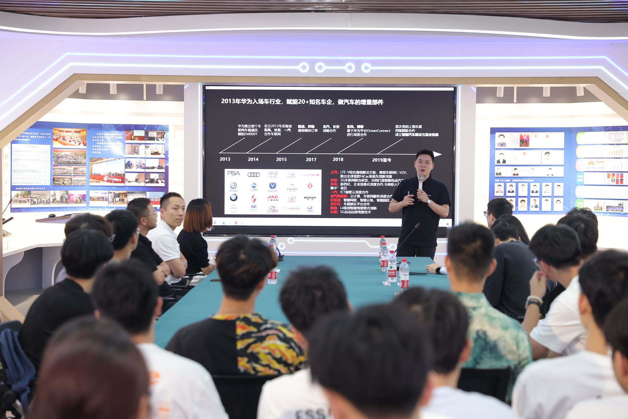 活动第一部分为主题讲座和互动环节。鸿蒙智行湖北省车业务培训导师付忠豪为同学们带来了一堂关于智选车产品亮点与技术优势的前沿讲座,从鸿蒙智行的历史与发展理念导入,聚焦鸿蒙智选车的创新亮点与技术优势,深入浅出地讲解了鸿蒙系统的研发背景、技术亮点和应用前景,深度解析了其在智能出行领域的领先地位。付导师解析了鸿蒙智选车的核心技术——ADS 3.0,这项技术创新不仅让车辆成为智能生态的一部分,更实现了人、车、家的无缝连接。通过生动的案例,他展示了智选车如何在安全、便捷、舒适上超越传统,为用户带来前所未有的驾驶体验。