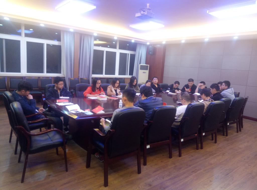 本次主题党日会议由党支部书记李美柳同志主持召开。首先,李美柳同志介绍了本次会议的主要内容和相关流程并带领大家唱国歌、宣读入党誓词。其次,李美柳同志以“十九大报告”文件带领大家学习了本次会议提出的重要内容,领略了其中深刻的含义。“党的十九大是在全面建成小康社会关键阶段、中国特色社会主义发展关键时期召开的一次十分重要的大会,对鼓舞和动员全党全国各族人民继续推进全面建成小康社会、坚持和发展中国特色社会主义具有重大意义。”并谈及了自身的认识与看法。接下来,支部党员与入党积分子对本次修订的《党章》的内容进行了学习与交流。