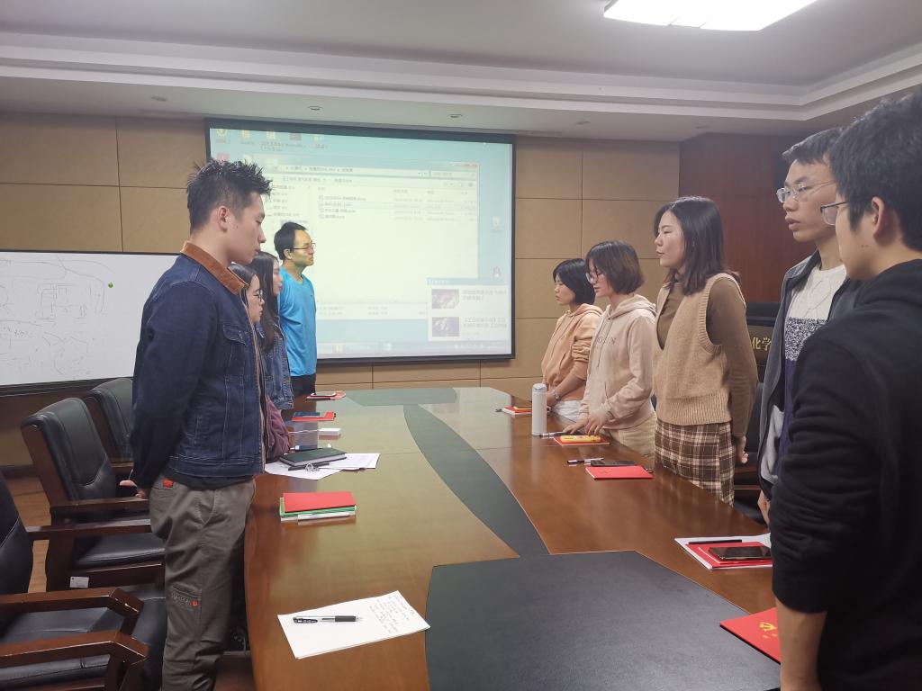 首先,陈东帅同志介绍了本次活动的主要内容并带领大家唱国歌。新中国成立七十周年之际,作为中国地质大学一名博士生,继承和弘扬李四光精神,热爱祖国,追求进步,崇尚科学,勇于创造,埋头苦干,勤于实践,积极推进地质工作的转变,使地质工作更紧密的与国民经济和社会发展相结合,主动为经济和社会发展服务。牢记地质三光荣:以献身地质事业为荣、以找矿立功为荣、以艰苦奋斗为荣。党支部集体观看了相关视频,支部成员结合自身实际情况发表观后感。