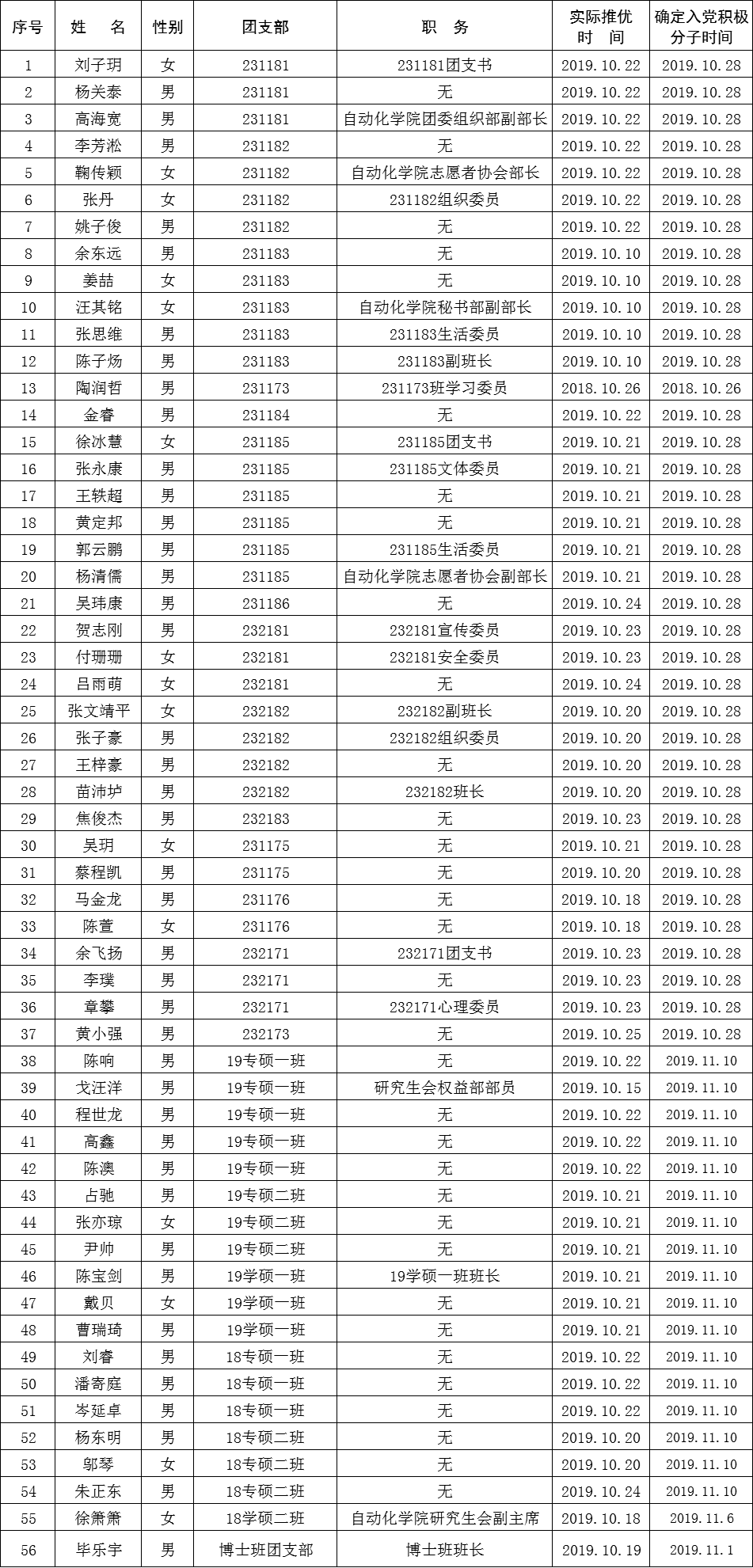 经过学院各党支部慎重考虑,从本科生、研究生团支部推荐的优秀青年中确定黄色影片 第十一期入党积极分子培训班学员56人,先将名单公示如下: