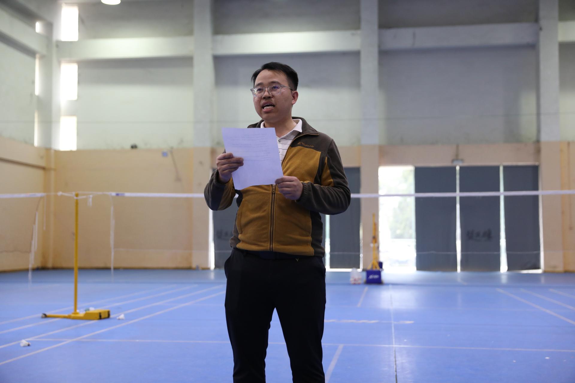 开幕式上,运动员代表陈国柳、裁判员代表许传沛分别发言,学院副院长宗小峰致辞并宣布开幕,他在致辞中希望全体参赛运动员,在比赛中既要赛出水平,又要赛出风格,在运动中促进师生友谊,营造全院范围亦师亦友、互敬互爱的师生导学关系。同时希望全体工作人员积极配合,做好赛事的服务工作,确保本次比赛顺利开展。