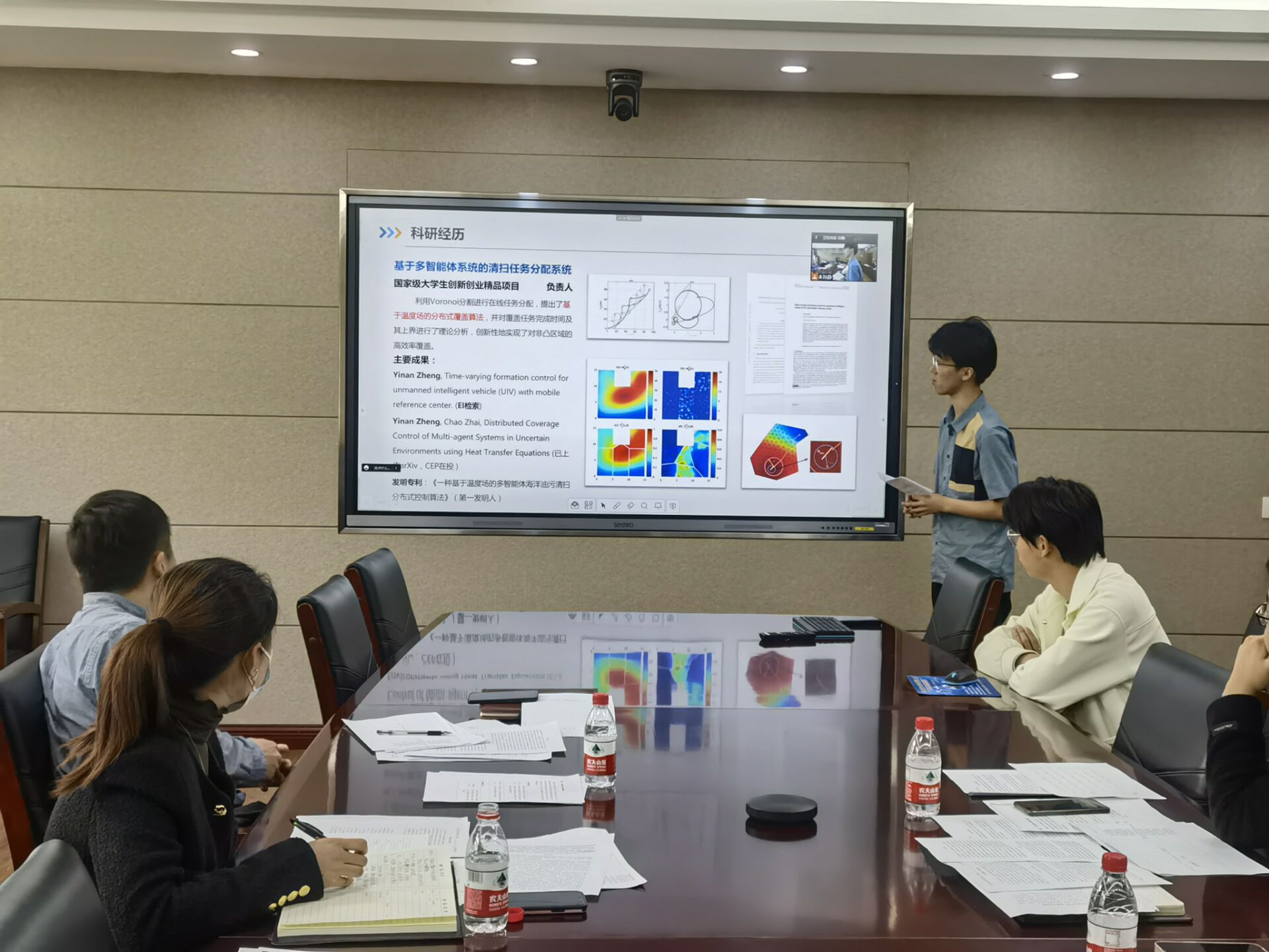 最后郑一楠同学从思想政治、课程学习、科研经历、竞赛奖项、学生工作几个方面对自己的经历进行了介绍,同时表达了对学校和学院的深深感谢。