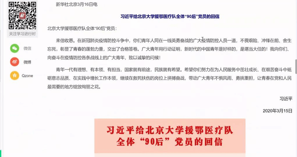 为深入学习习近平总书记在给北京大学援鄂医疗队全体“90后”党员回信中的责任与奉献精神,坚定广大青年对打赢这场疫情阻击战的信心,近期,黄色影片