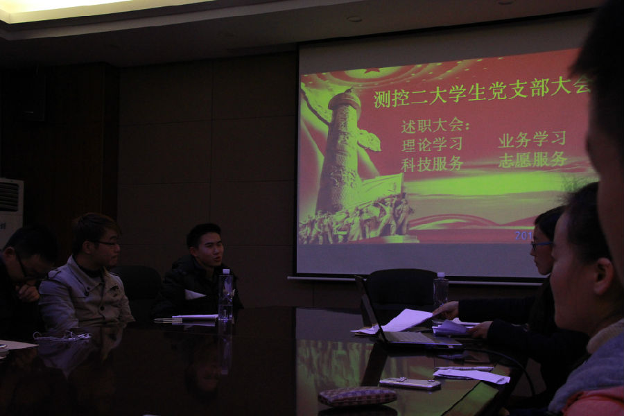(通讯员 衡欣欣)2015年12月2日晚,测控二大学生党支部在信息楼316会议室召开了支部大会。本次会议由党支部书记李文伯主持,支部党员及积极分子参会。