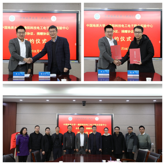 举行。深圳市鼎阳科技股份有限公司销售总监周江、鼎阳湖北总代理沈东辉、鼎阳科技股份有限公司销售经理胡德才,中国地质大学(武汉)校友与社会合作处合作发展办公室主任王鑫,学院党委书记朱荆萨,院长曹卫华教授,副院长熊永华教授、陈略峰教授、宗小峰教授以及黄色影片