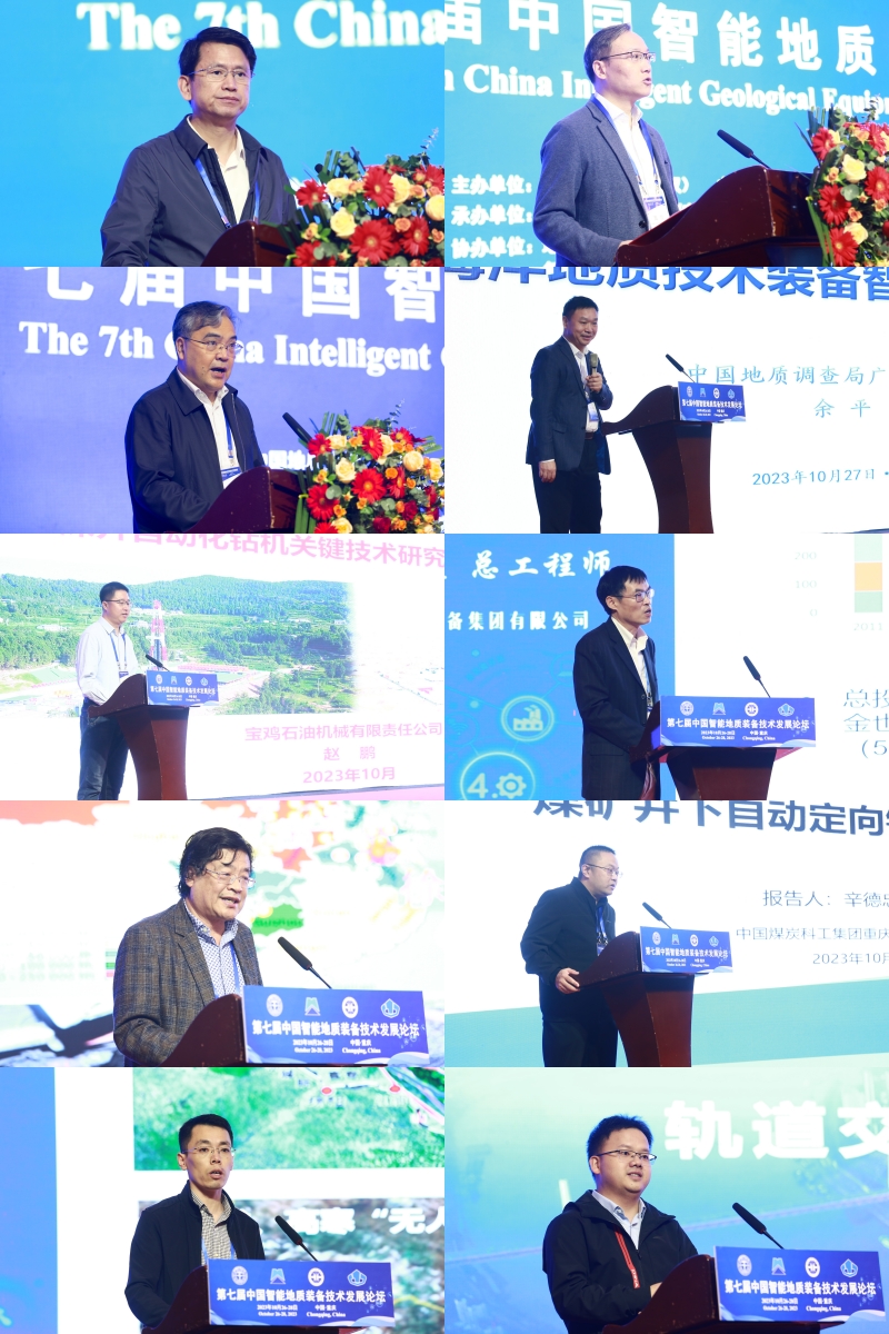 颜成义、周俊、周寅伦代表主办方和承办方分别致辞。广州海洋地质调查局副总工程师余平、中国石油宝鸡石油机械有限公司高级工程师赵鹏、中国地质装备集团有限公司总工程师黄洪波、中国矿业大学马小平教授、中煤科工集团重庆研究院有限公司首席科学家辛德忠、中国科学院武汉岩土力学研究所韩增强副研究员、重庆市测绘科学技术研究院副总工程师胡波,分别作大会主题报告。各位专家结合自身研究领域和工程应用方向,分析了地质装备现状、智能制造在地质装备中的应用以及往后的智能化发展方向,提出地质装备智能化发展过程中存在的机遇和挑战。