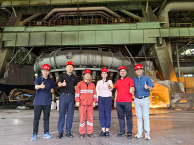 调研中,朱荆萨一行首先来到湖南涟钢一线炼铁现场——8号高炉厂参观调研,在滚滚热浪中映入眼帘的是出铁口,炉底铁水在出铁口间断地放出后装入铁水罐,送往炼钢厂。在生产现场,学院领导进一步详细了解钢铁行业的新技术、新工艺、新设备,认真听取企业的发展历程、主要业务、技术现状等情况,为继续深入开展校企合作、产教融合奠定了良好基础。