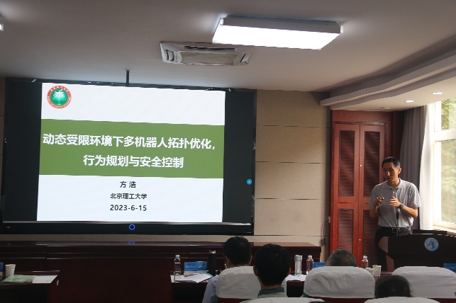 6月15日上午,邀请北京师范大学王庆国教授作了题为《System identification with poor data in network era》的学术报告;美国Case Western Reserve大学林威教授作了题为《A semiglobal framework for input delay tolerance of nonlinear systems》的学术报告;西北工业大学李慧平教授作了题为《海洋航行器的经济规划与预测控制》的学术报告;北京理工大学方浩教授作了题为《动态受限环境下多机器人拓扑优化,行为规划与安全控制》的学术报告。6月15日下午,由中国地质大学(武汉)陈鑫教授主持了教师科研能力提升研讨会;由加拿大康考迪亚大学苏春翌教授主持了软体机器人专题研讨会。
