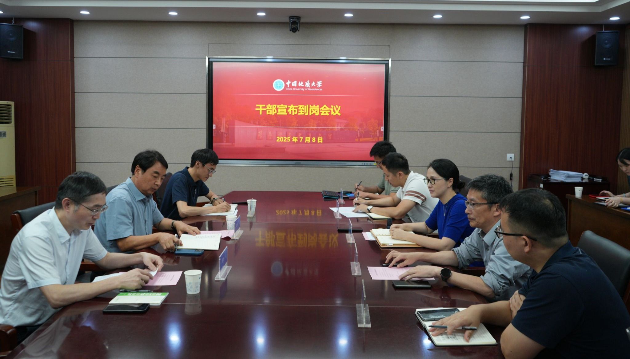 干部宣布到岗会在信息楼316会议室召开。校党委常委、副校长王文起,党委组织部正处级组织专员周刚,学院领导班子成员,各三级单位负责人及教师代表参加会议。会议由周刚主持。
