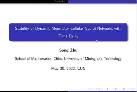 朱松教授是中国矿业大学数学学院资深教授,主要研究方向是随机系统稳定性理论、神经网络、忆阻器、流体网络。本次报告会朱教授介绍了基于忆阻的细胞神经网络模型,以及该神经网络的单稳定性和多稳定性及其联想记忆应用。朱教授用严谨并富有热情的报告给黄色影片