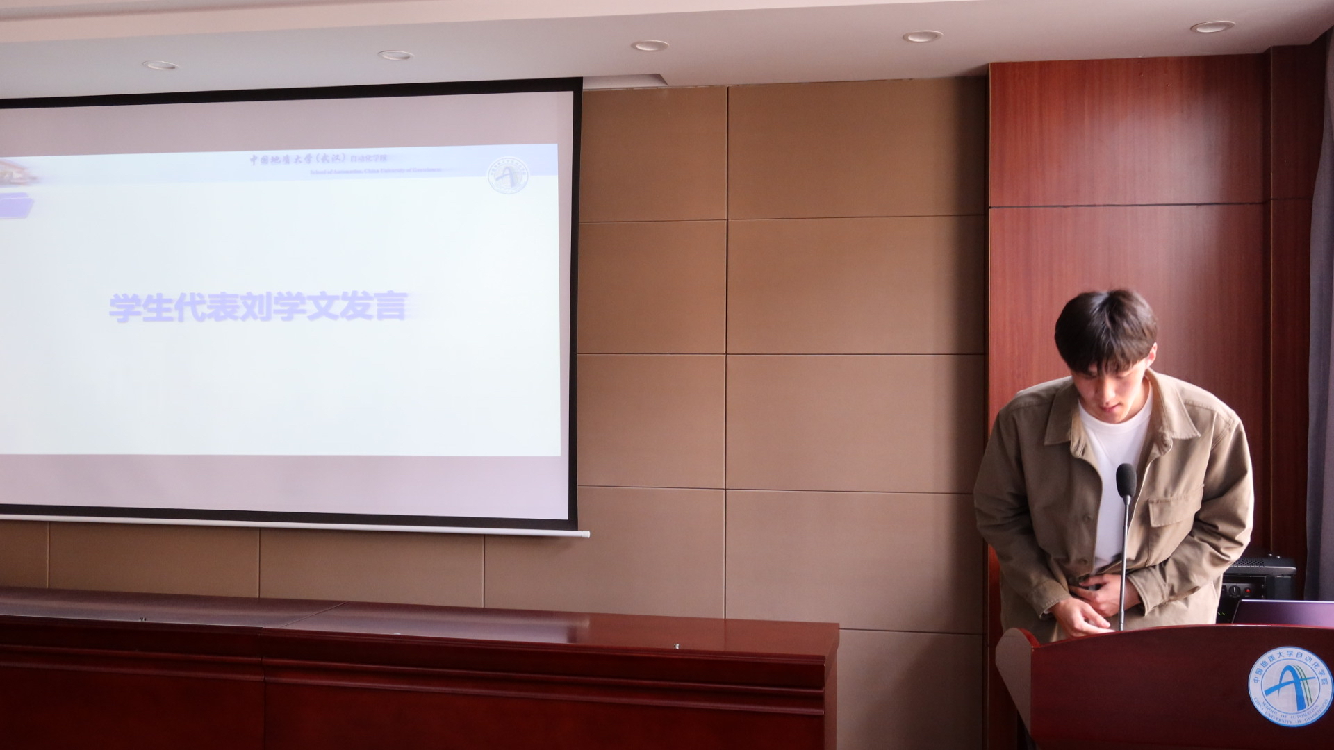 紧接着学生代表2019级本科生刘学文发言。刘学文分享了自己进入大学以来的学习历程和心态变化,为同学们总结出“今日事,今日毕”、积极参加科研活动等学习经验。