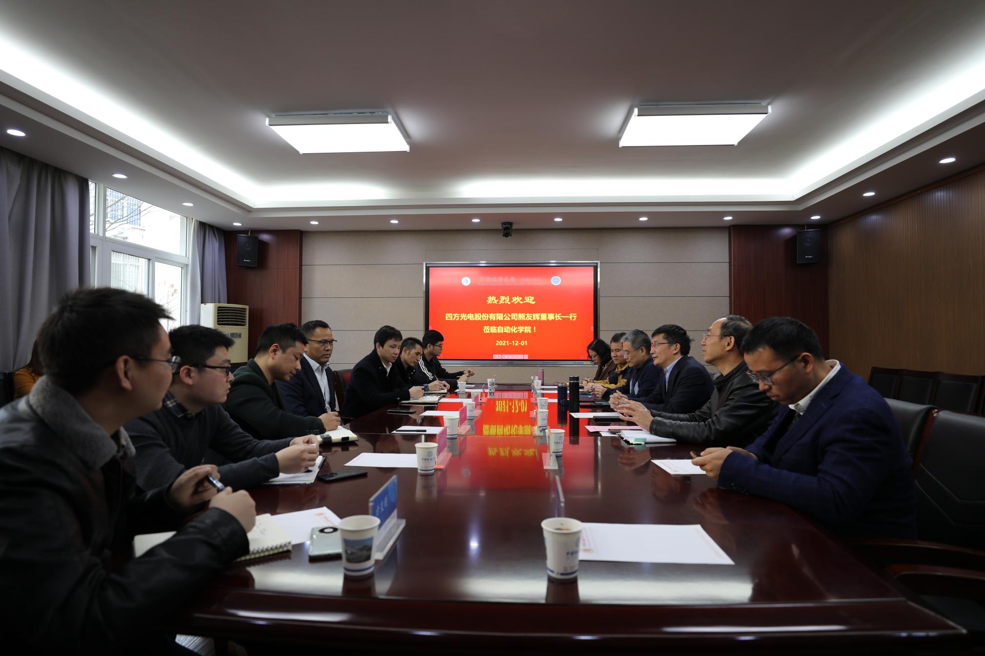 交流访问。他简要介绍学院近年来在学科建设、国家级项目等方面取得的突破,以及学院面向未来的人才培养思路。熊友辉董事长介绍了四方光电的企业发展运营、大项目攻关和谋划,校企合作等情况。随后,陈鑫教授对学院整体科研方向和进展情况作详细介绍,双方就如何开展校企合作进行了探讨。