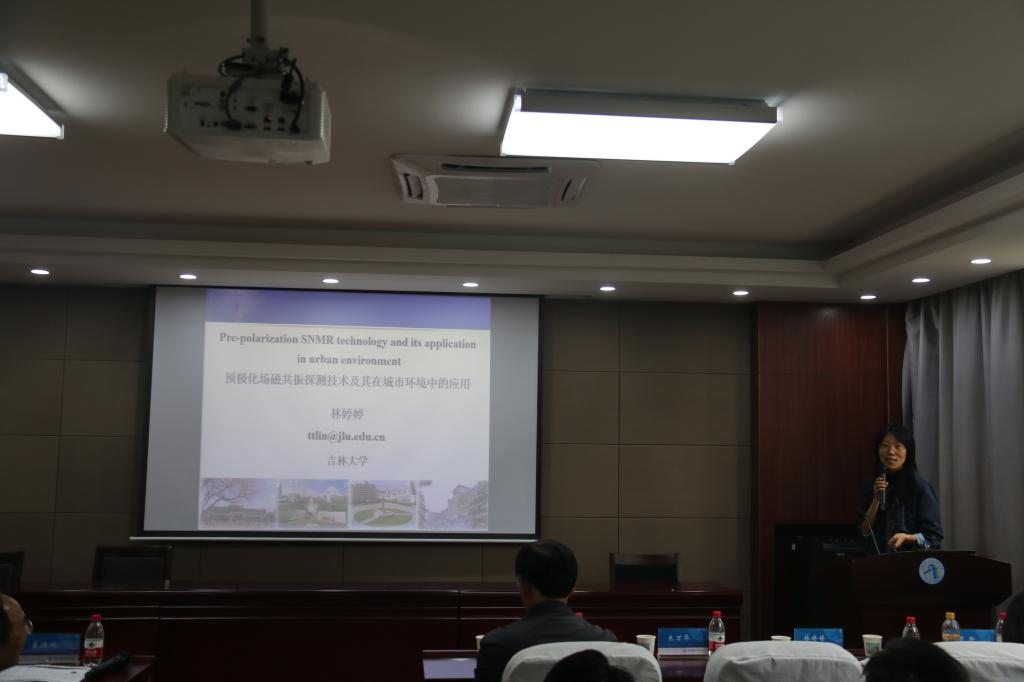 林婷婷教授现任吉林大学仪器科学与电气工程学院副院长,是教育部霍英东基金青年教师奖获得者,其报告题为《预极化场磁共振探测技术及其在城市环境中的应用》。她分析了地面磁共振技术在城市等复杂工程环境下应用所面临的挑战,介绍了预极化场磁共振探测技术在城市浅层地下水、有机污染探测及地下空间综合利用等方面的应用前景。由于现有的磁共振技术受限于地磁场探测环境,信号极其微弱,难以应用在城镇、地下工程等高噪声环境中,林教授团队创新性地提出预极化场磁共振探测技术,主动增强磁共振信号幅度,有效提升信号响应1个量级以上,进一步提升了磁共振探测仪器对强噪声干扰环境适应性。