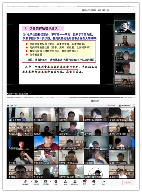 疫情期间,科技创新指导团队统筹安排,各项竞赛的负责人明确分工,齐头并进,充分利用腾讯会议、QQ、微信等平台,积极开展在线教学、指导和成果验收。此外,各竞赛负责教师还邀请参加过多次竞赛的高年级学生,组建了学生教练团队参与指导。