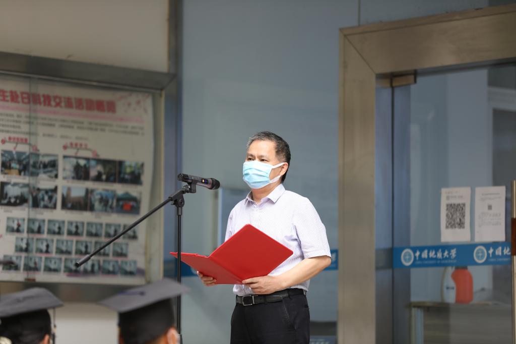 师生共同来到学院前广场,吴敏院长发表了热情洋溢的毕业讲话,勉励毕业生要自信自强,保持终身学习的习惯和常怀感恩之心,积极实现绚丽的人生梦想。