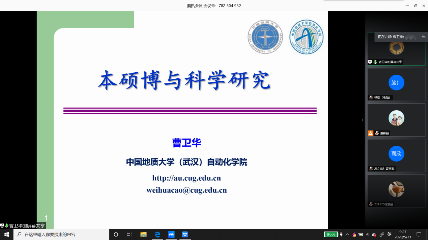 为“自动化科学菁英计划”组织召开了云端报告会。常务副院长曹卫华教授应邀作了题为“本硕博与科学研究”的报告,副院长宗小峰教授参与了讨论和交流。报告会由董凯锋教授主持。