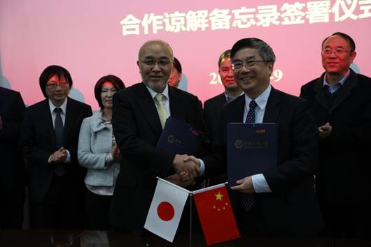 我校校长王焰新与日本名古屋工业大学校长鵜飼裕之教授签署合作谅解备忘录