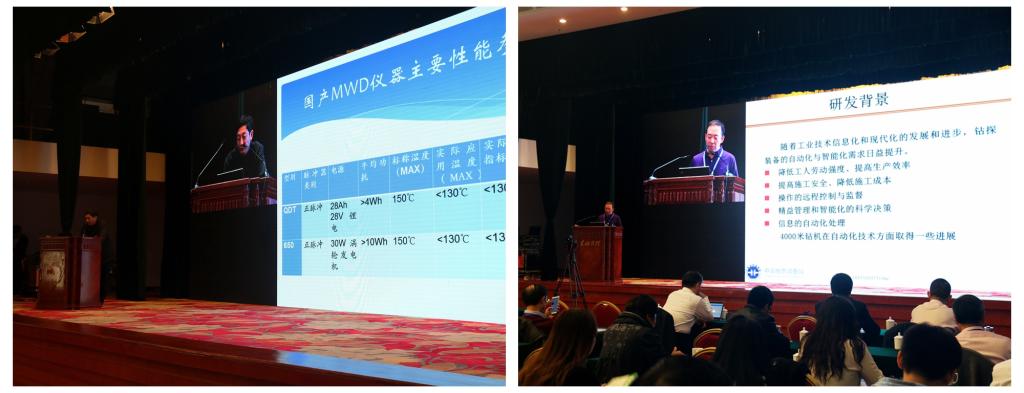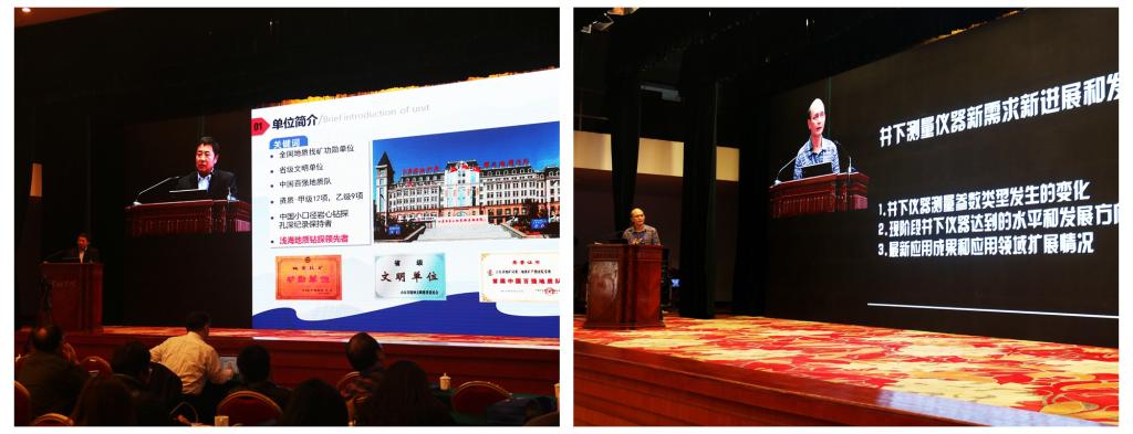 院长吴敏教授作报告,题目为《钻进过程自动化与智能化技术》;中煤科工集团西安研究院有限公司副总经理姚宁平作报告,题目为《煤矿井下钻探装备发展现状与智能化进展》;武汉探道能源技术有限公司董事长黄敬作报告,题目为《小口径高温环境MWD关键技术研究进展》;中国地质科学院勘探技术研究所总工程师刘凡柏作报告,题目为《4000米地质岩心机与其自动化技术、绿色设计及制造》;山东省第三地质矿产勘查院副院长张英传作报告,题目为《创新思维——浅海钻探平台的研制及应用》;上海地学仪器研究所所长井然作报告,题目为《井下测量仪器新需求新进展和发展态势》。