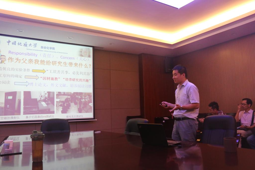 董凯锋副教授作了题为“研究生培养过程中导师与研究生的角色定位”的报告。他从一个年轻导师的角度阐述了自己在研究生指导过程中的感悟,提出导师与学生之间“父亲”、“老师”、“老板”等三种层面的定位关系,介绍了学生培养的条件建设、传道授业解惑、宽进严出机制等培养思想和方法。