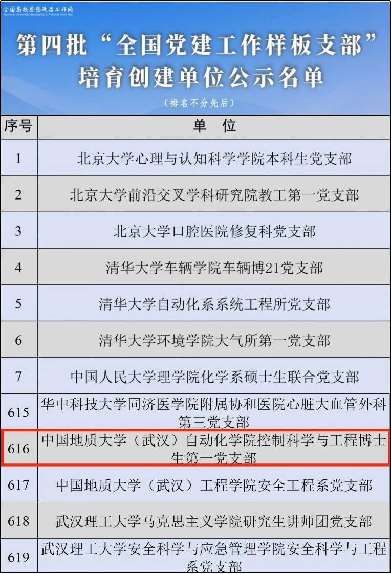 控制科学与工程博士生第一党支部作为学校首个研究生党支部创建单位,入选“全国党建工作样板支部”,也是支部继2022年入选首批湖北省高校党建工作样板支部培育创建之后,党建工作取得的新成绩。