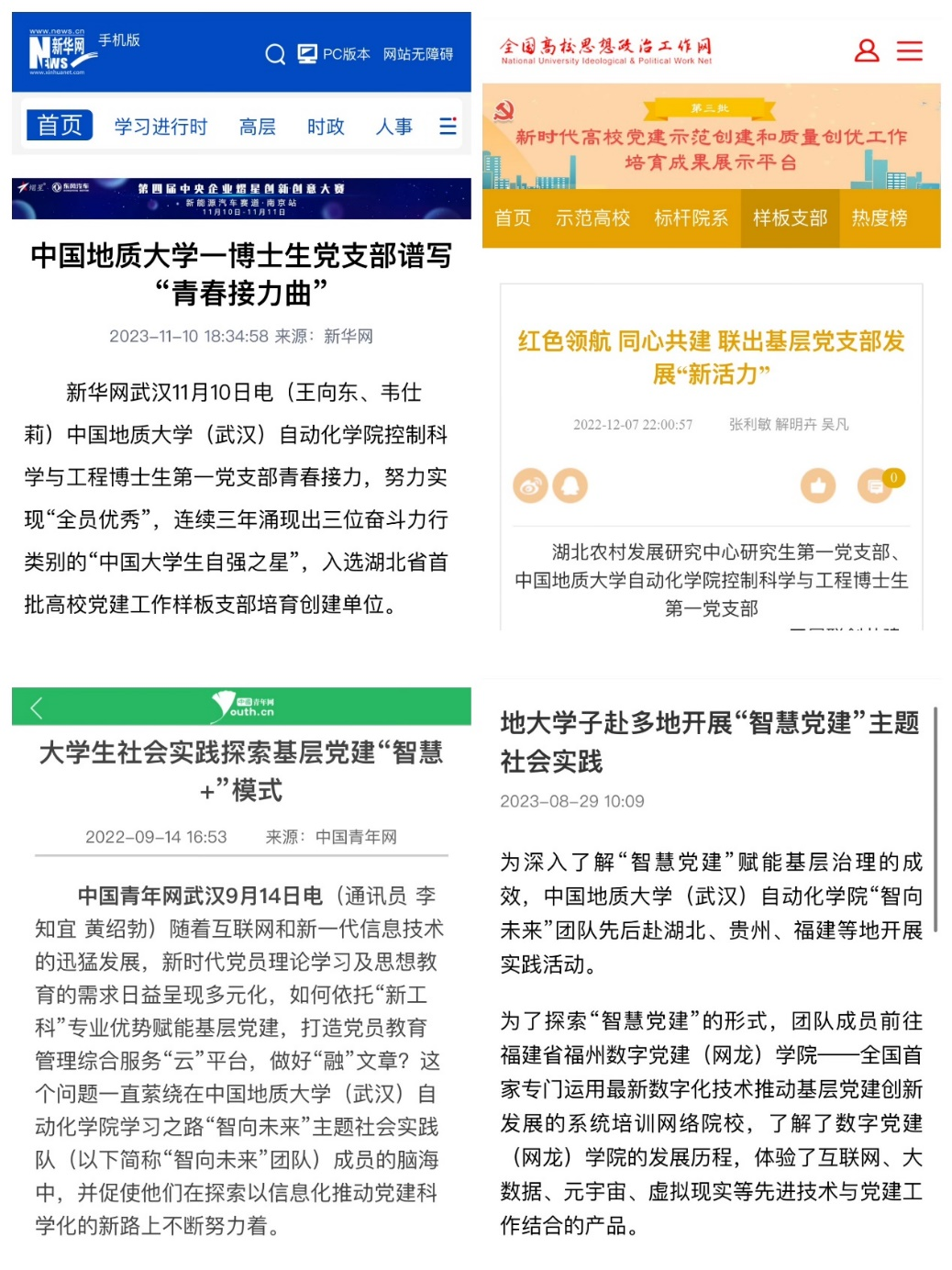 近年来,支部成员聚焦“四个面向”“新一轮找矿战略突破行动”等国家重大战略,戮力攻坚“智能+地学”关键技术,近三年在自动控制、人工智能等领域国际权威期刊发表高水平学术论文130篇(其中一区60篇,二区30篇),授权国家发明专利30余项;连续三年涌现出杜胜、毕乐宇、黎育朋3名“中国大学生自强之星”,7人荣获国家奖学金,斩获“互联网+”“挑战杯”等创新创业竞赛国家级奖励8项,1人获评湖北省高校研究生党员标兵培育创建,1人获评湖北省社会实践活动先进个人,10人获评校级优秀研究生标兵、优秀共产党员,接续在创新实践和服务奉献中展现青年党员的使命担当。