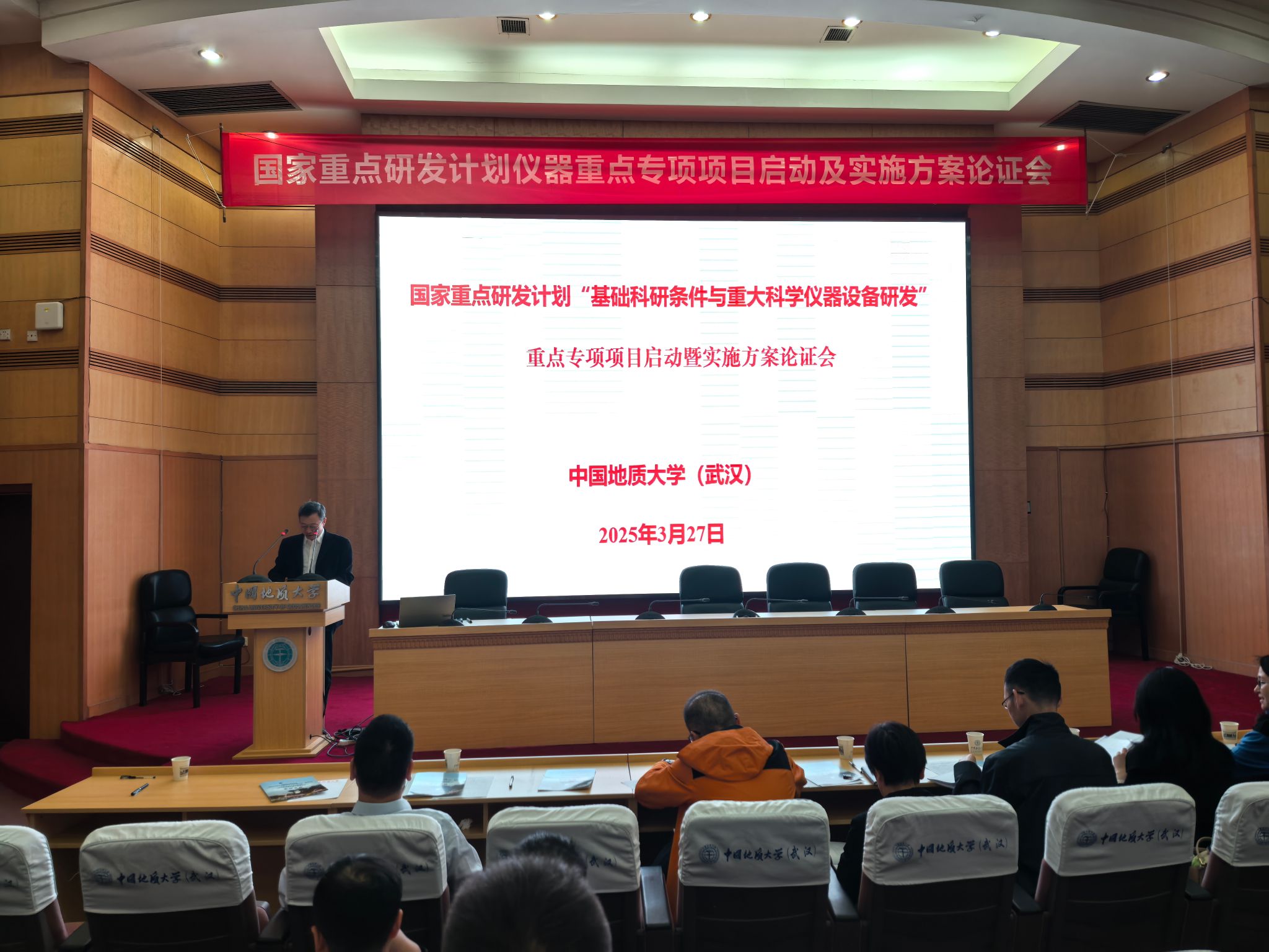 章军锋副校长对受邀各位专家到访指导表示热烈欢迎。章军锋副校长首先介绍了项目牵头单位中国地质大学(武汉)基本情况,重点介绍我校地质过程与成矿预测全国重点实验室和地质微生物与环境全国重点实验室基本情况。他表示,该项目旨在突破固体样品直接进样器产业化的技术瓶颈,致力于解决固体样品化学分析领域元素/同位素微量高精度分析的科学问题,也我校在科技攻关道路上不断探索、不断创新的深度体现。