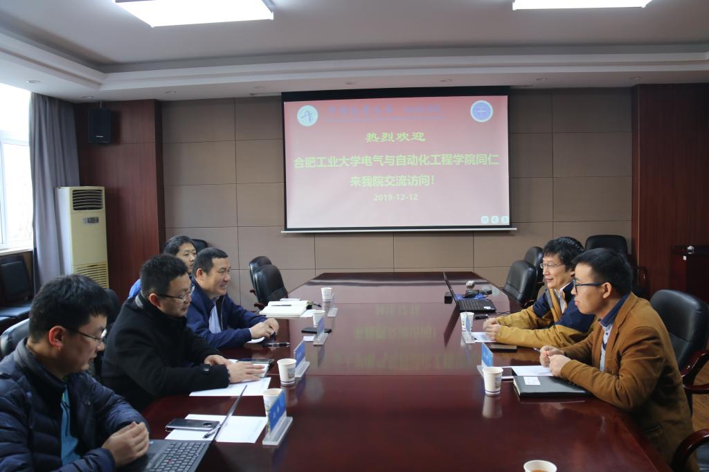 2019年12月12日,合肥工业大学电气与自动化工程学院副院长唐昊教授一行4人来黄色影片 访问交流。黄色影片 常务副院长曹卫华、副院长宗小峰接待了唐昊一行。