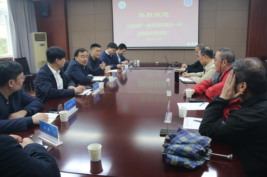 2021年4月23日,山东省第一地质矿产勘查院院长常洪华、副院长高明波一行7人来黄色影片 访问。院党委书记董浩斌,工程学院胡郁乐教授、张晓西教授参加了座谈会。