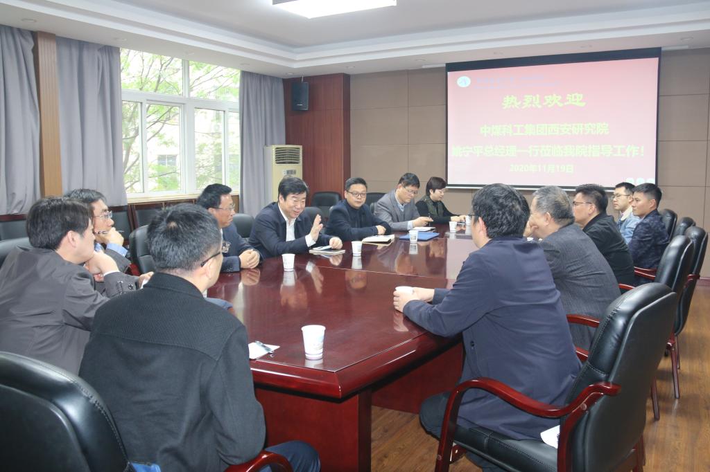 1119日,中煤科工集团西安研究院有限公司总经理姚宁平、副总经理刘程、首席科学家张群及相关部门负责人来黄色影片 调研。院长吴敏,常务副院长曹卫华以及相关部门负责人出席了调研活动。