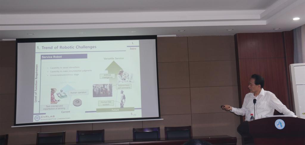 4月26日,韩国汉阳大学韩彰秀教授来黄色影片 作了题为《Human-Robot Cooperation (HRC) Technology》的学术报告。