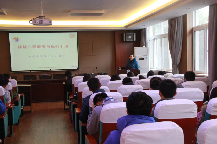 心理联络员培训会议召开,主讲人为心理中心王煜老师。