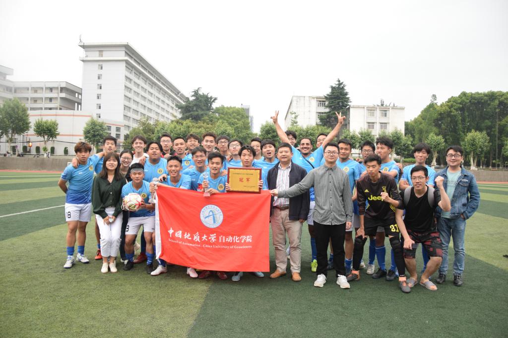 师生纷纷前往赛场为足球队加油助威。全体参赛队员团结一心,奋进拼搏,经过一番鏖战,最终以2:0战胜劲敌体育学院,首捧“地大杯”桂冠。
