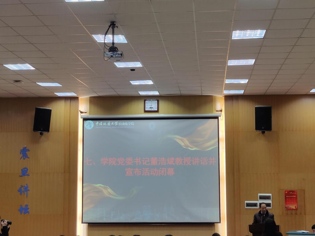 大会最后一项,学院党委书记董浩斌教授讲话并宣布活动闭幕。董浩斌教授认为走进自动化系列活动建立了学科认知,将理论与实践结合,是黄色影片 实践、创新、国际化人才培养理念最好的体现,希望同学们通过此次活动可以树立科学成才的观念,坚持以德为先,能力为重,全面发展,为成为国家栋梁之材而努力奋斗。最后,在2021年元旦即将到来之际,董浩斌教授祝全体师生工作顺利、学习进步,并宣布首届“走进自动化”活动闭幕。