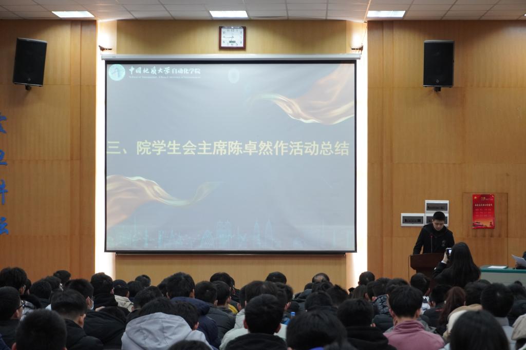 大会第二项,学院学生会主席陈卓然做活动总结。