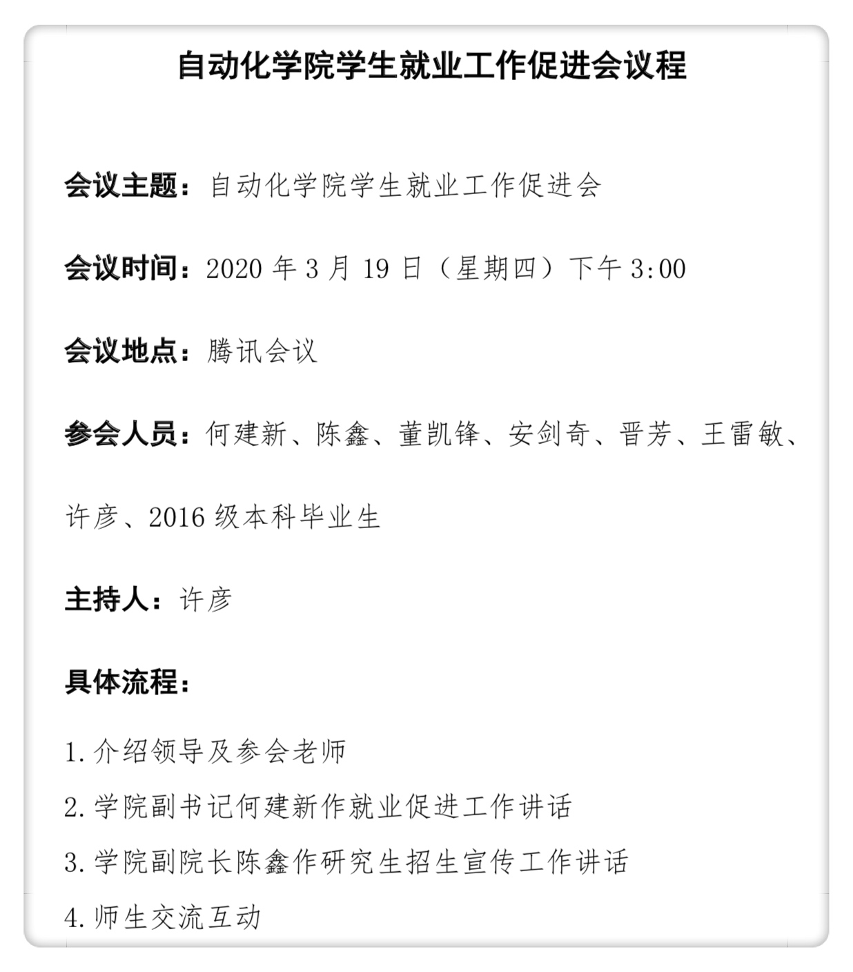 本次促进会召开恰逢其时,有效地帮助同学们梳理了思路;学生表示很受启发,应充分利用好居家时间,积极采取就业的行动,作出合理选择与规划。