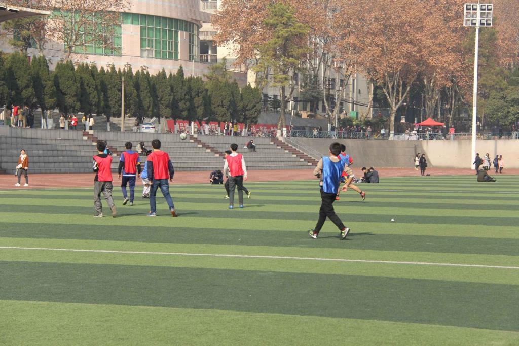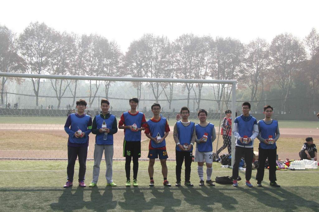 各年级16位足球爱好者,组成红蓝两支队伍进行足球对抗赛。自动化球队王召辉、丁呈祥、毛怡冉担任裁判,上午10时40分,比赛正式开始。随着裁判的一声哨响,蓝队率先开球,比赛刚开始,双方球员便展现出极强的求胜欲望,在场上开展了激烈的拼抢。比赛的前十分钟,蓝队率先进入了状态,队长毛宇涵多次利用出众的个人能力完成过人突破造成威胁,而比赛进行到第20分钟时,蓝队的进攻也终于收到了成效,毛宇涵抓住对方后防的一次失误,在对方后场断球后打门得手,攻入了比赛的第一粒进球,也为球队带来了领先,场上比分被改写为1-0。此时红队球员才逐渐进入了状态,反击越来越犀利,比赛进行到第28分钟,红队队长丁佳宁在禁区边缘发现空当,一脚地滚球劲射将球打入死角,顽强地将比分扳为1-1。随后虽然双方攻势依旧强烈但却都再无建树,1-1的比分被保持到中场。