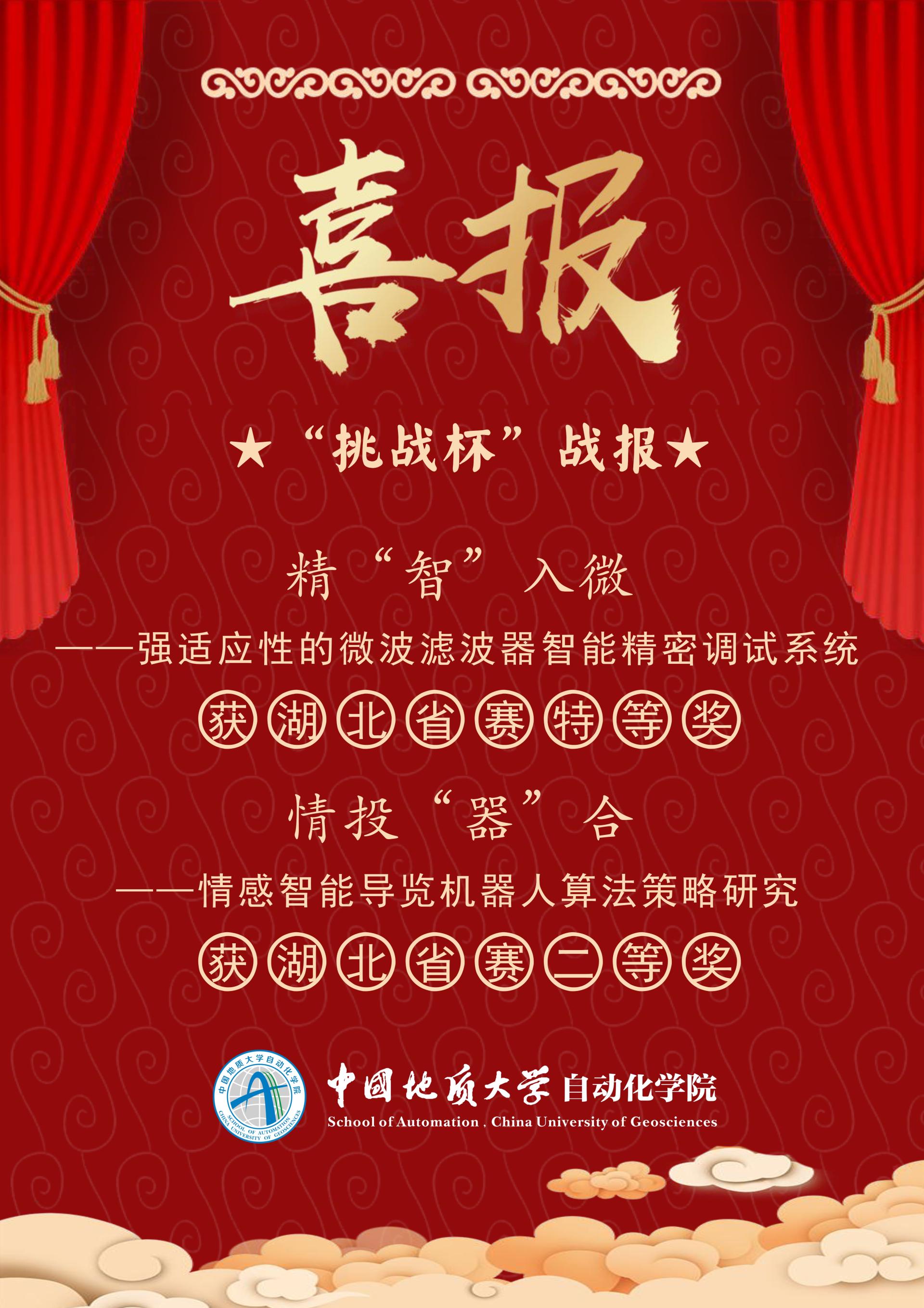 曹卫华教授、王向东老师和王艺霖老师共同指导,团队成员包括贺江、杨豫龙、曾国依、任泰锟、杨文琳、陈泓旭、黄绍勃、孟乐年,为本硕交叉组队,荣获本次省赛特等奖。该项目面向制造强国、网络强国、数字中国重大战略需求,交叉融合控制科学、微波通信、精密制造等多学科,实现了多型号滤波器的高精度、高效率调试,推动相关企业生产向高端化智能化转型,促进微波通信核心基础零部件智能制造。