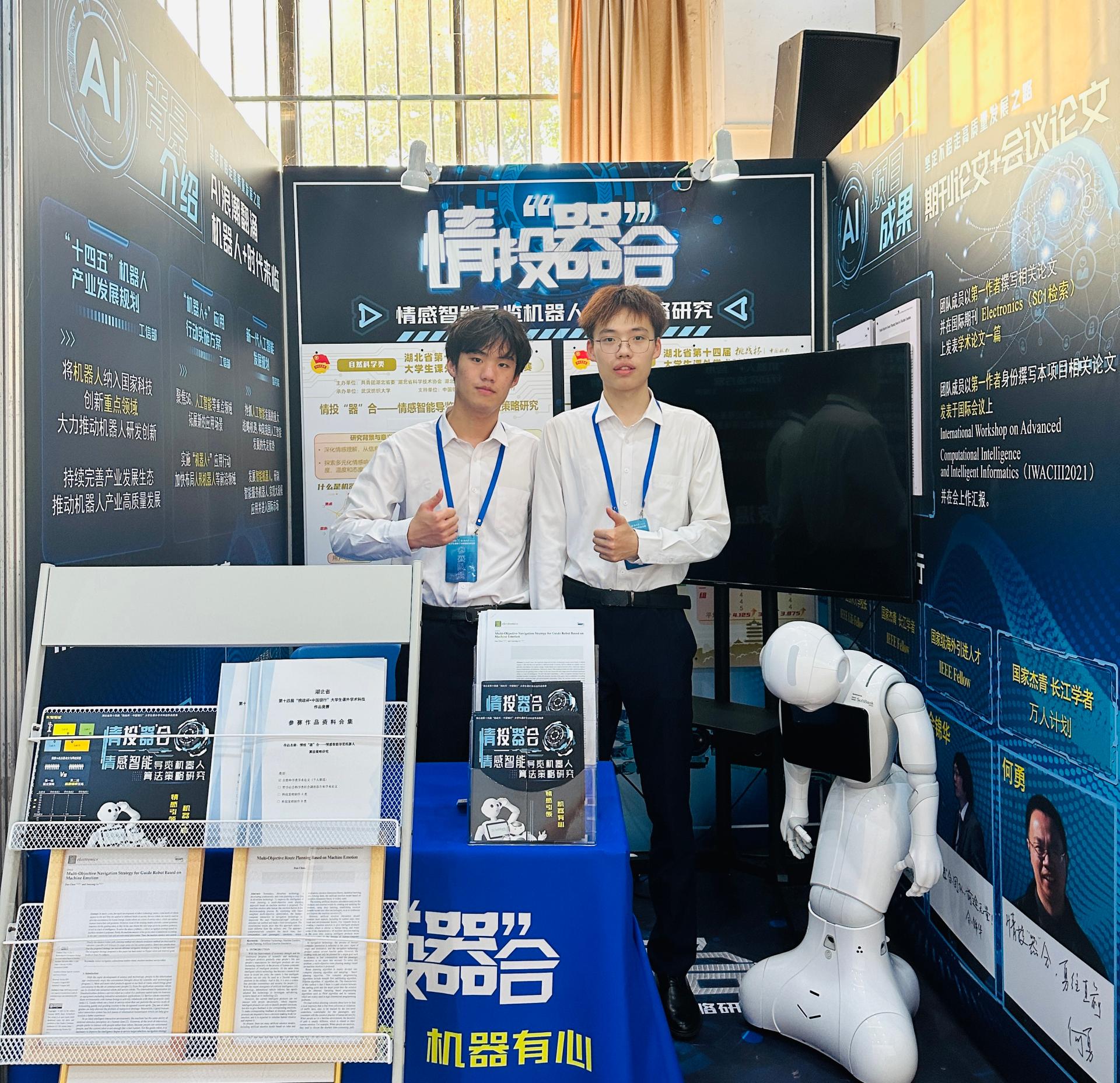 本科生陈聃、未来技术学院本科生葛云聪组成,荣获省赛二等奖。该项目提出基于机器情感的人机交互策略,并以导览机器人为研究对象,在实际场景中进行理论方法部署与验证,探索更多元化的人机情感交互。