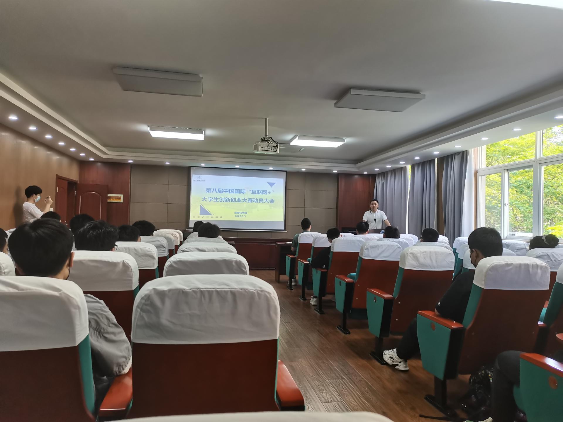在信息楼310召开第八届中国国际“互联网+”大学生创新创业大赛动员会,学院党委副书记王向东老师、团委副书记黄兰华老师、各班科技委员、自主创新资助计划团队成员参加本次会议。