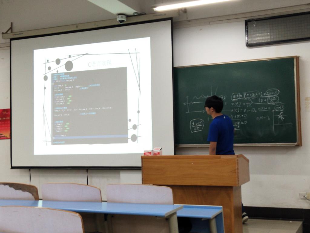 在高级组的培训中,王锐同学对传感器板块进行了讲解,他对传感器的整体分布和安装位置进行了讲解。然后,他对小车制作过程中的代码进行了简单的介绍。最后,他着重讲解了电磁传感器如何检测磁场。接下来,杜晨同学上台,分别从电源、STM32/K60、电机、驱动、编码器方面进行了讲解。除此之外,他还详细的介绍了PID算法、PWM调制技术和小车制作过程中会用到的代码。在培训现场,面对同学的提问,杜晨同学做出了耐心的解答。