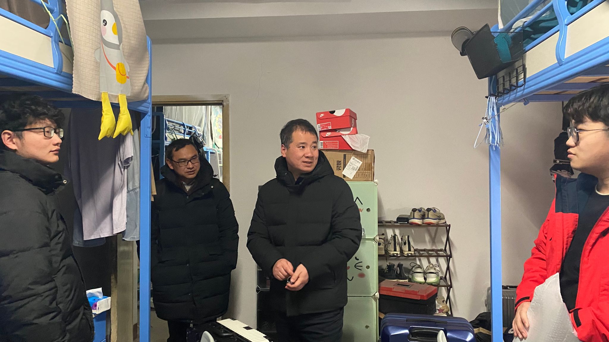 在师生之间的亲切交谈中,同学们积极分享在假期的见闻以及生活状态,老师们关切询问学生家庭是否遭受暴雪、冻雨等极端天气影响,主动倾听了同学们的心声和需求,并在思想道德、生涯规划、行为作风、生活作息和心理健康等方面进行了进一步的指导和关怀。老师们叮嘱大家尽快调整学习状态,明确自己的人生目标,科学进行生涯规划,做有远大的理想、有高超的本领、有勇于担当民族复兴大任的责任感和自信心的时代新人。同时督促自动化学子养成良好的生活习惯,注意个人卫生和宿舍用电安全,生活中提高警惕,养成防诈骗意识。走访当天恰逢全国研究生招生考试成绩公布,行至2020级本科生宿舍时,老师们亲切询问每一位考研学子的备考院校及考试情况,了解毕业生们的就业去向与未来规划,勉励同学们要保持乐观的心态,积极面对未来的挑战。